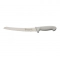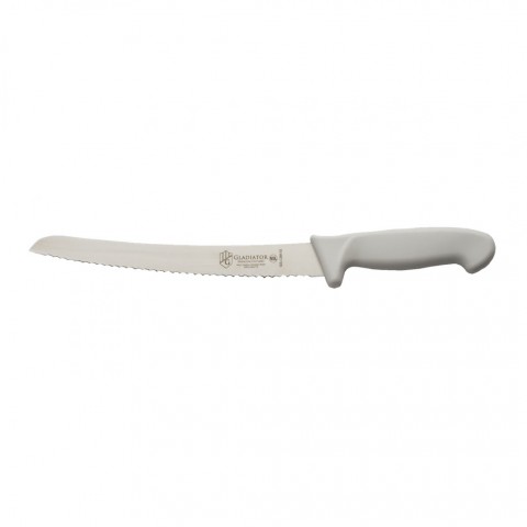 Gladiator Bread Knife, 10", curved edge, hand honed edge, forged, high carbon stainless steel, plastic handle, white, NSF (clam packed)