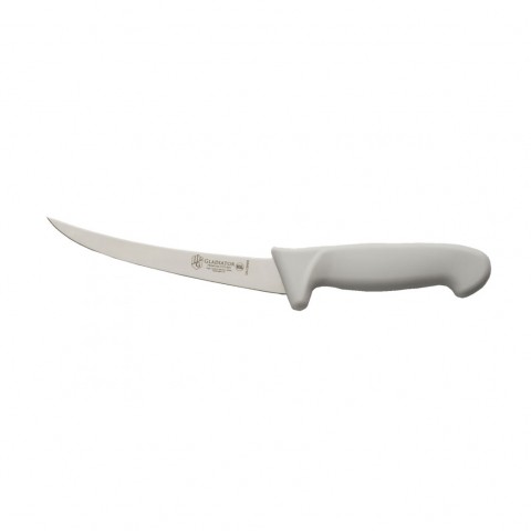 Gladiator Boning Knife, 6", curved edge, hand honed edge, forged, high carbon stainless steel, plastic handle, white, NSF (clam packed)