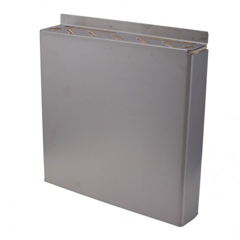 Knife Rack, 12" x 12" x 2-1/2", wall mount, 5 knife slots, 2 holes for sharpening steel with protective rubber insert, stainless steel