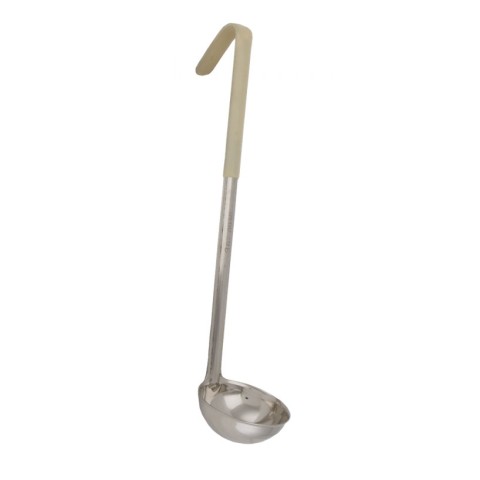 Ladle, 3 oz., 11" handle, 13" overall length, one-piece, capacity marked on handle, stainless steel, PVC coated handle, ivory