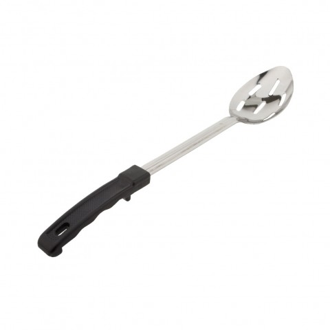Basting Spoon, 15", slotted, stainless steel, black plastic handle