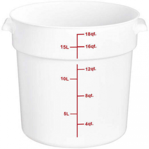 Food storage container, 14"W x 12.38"D x 12"H, 18 quart, round, white, NSF