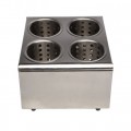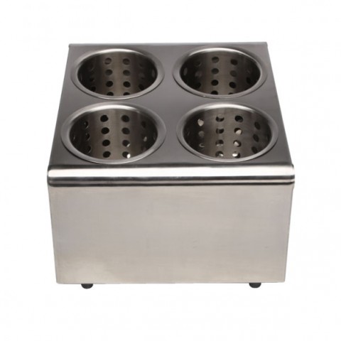 Flatware Dispenser, 4 hole, 11-5/8"L x 10"W x 8-1/2"H, non skid rubber feet, use item SCP or SCSS, stainless steel (cylinders sold separately)