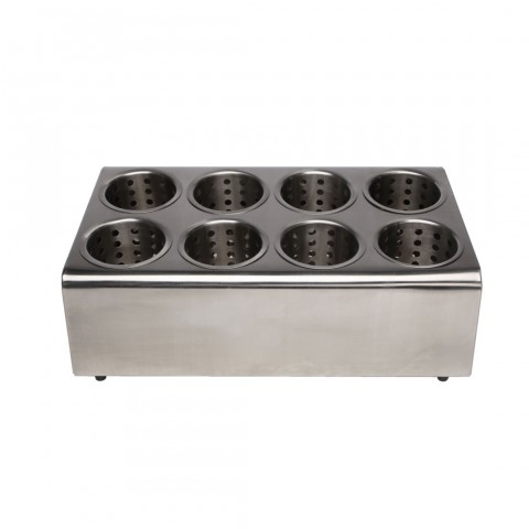 Flatware Dispenser, 8 hole, 19-5/8"L x 11-5/8"W x 8-1/2"H, non skid rubber feet, use item SCP or SCSS, stainless steel (cylinders sold separately)