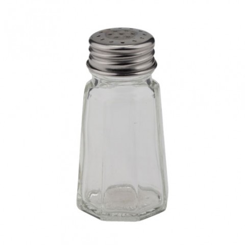 Salt/Pepper Shaker, 1 oz., paneled, with flat stainless steel cap, glass
