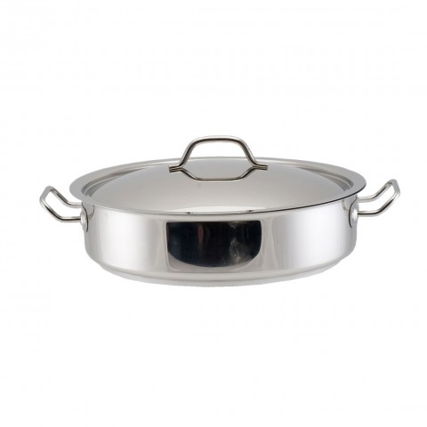 Brazier, 8 qt., 12" dia., with cover, welded stainless steel handles, aluminum clad bottom, 18/8 stainless steel