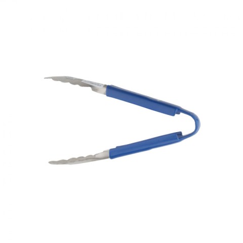 Tongs, 9", stainless steel, plastic coated handle, blue