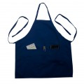 Bib Apron, 28-1/2" x 27", (2) 7" x 7" pockets, (1) 3" x 7" pencil pocket, 32" cloth ties, 65/35 poly/cotton twill, royal blue (individually packaged with barcode)