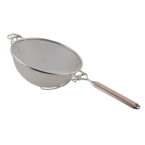 Strainer, 10", stainless steel, double medium mesh, heavy duty reinforced wires, wood handle