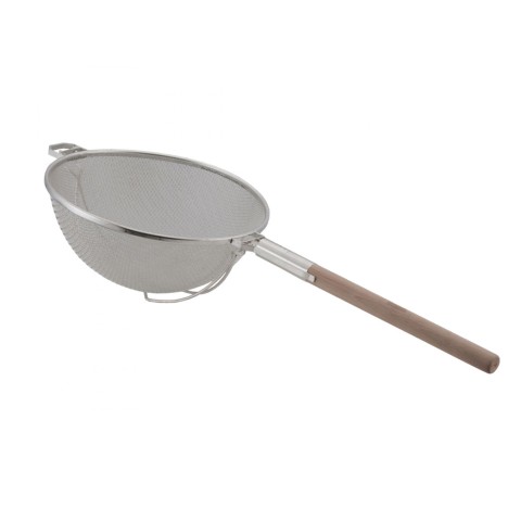 Strainer, 14", stainless steel, double medium mesh, heavy duty reinforced wires, wood handle