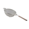 Strainer, 9", stainless steel, double medium mesh, heavy duty reinforced wires, wood handle