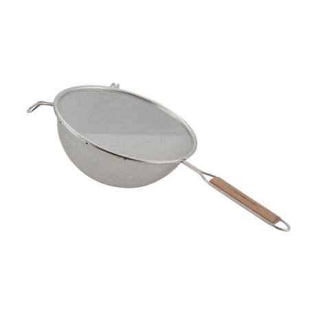 Strainer, 8", fine, stainless steel, fine single mesh, wood handle