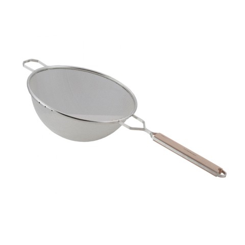 Strainer, 10", stainless steel, medium single mesh, wood handle