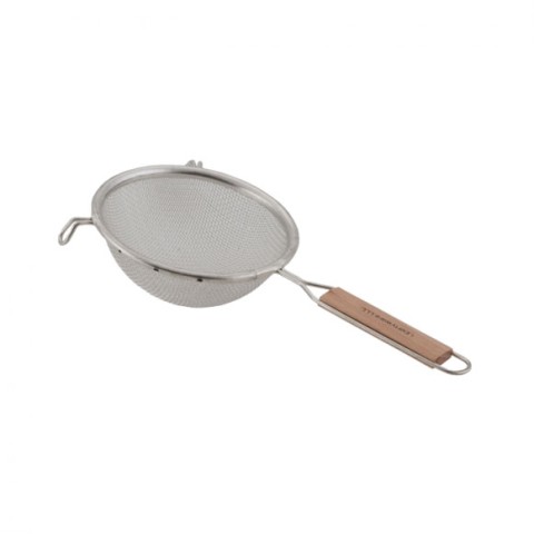 Strainer, 4", stainless steel, medium single mesh, wood handle