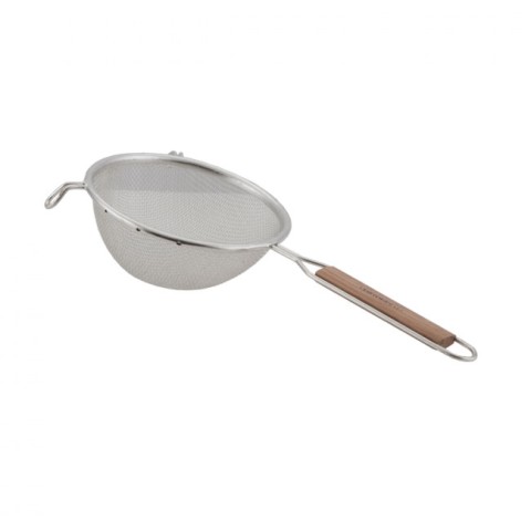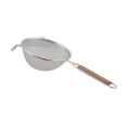 Strainer, 5", stainless steel, medium single mesh, wood handle