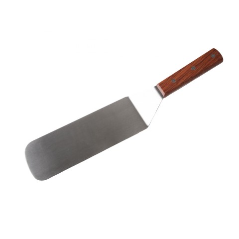 Turner, solid, 8" x 2-7/8" blade, flexible, round end, stainless steel blade, wood handle