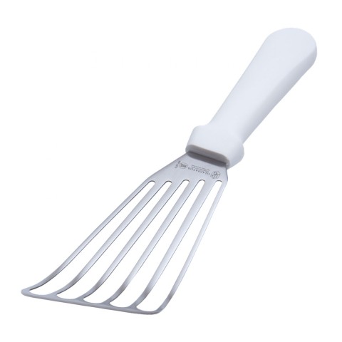 Gladiator Fish Spatula, 6-1/4" x 3", slotted, high carbon stainless steel blade, plastic handle, white, NSF (clam packed)