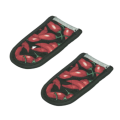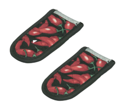 Hot Handle Holder Set, 8-1/16" x 3-1/4" x 1-1/16", heat protection up to 350°F, cloth, red chili pepper, Made in USA (2 each per set) (fits most Lodge cookware)