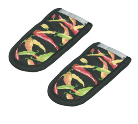 Hot Handle Holder Set, 8-1/16" x 3-1/4" x 1-1/16", heat protection up to 350°F, cloth, multi-color chili pepper, Made in USA (2 each per set) (fits most Lodge cookware)