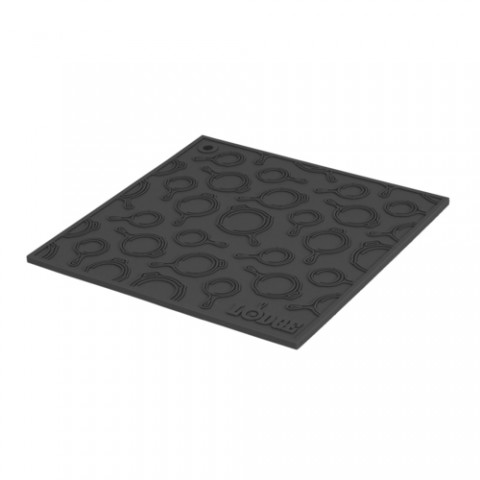 Trivet, 7", square, heat protection up to 500°F (surfaces) & 400°F (hands), raised skillet pattern, dishwasher safe, silicone, black, BPA Free