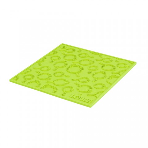 Trivet, 7", square, heat protection up to 500°F (surfaces) & 400°F (hands), raised skillet pattern, dishwasher safe, silicone, green, BPA Free