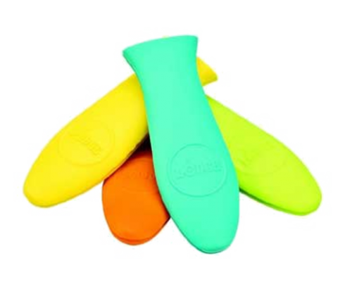 Hot Handle Holder Multi Pack, 5-1/8"L, heat protection up to 500°F, dishwasher safe, silicone, assorted colors, BPA Free (fits Lodge handles 10-1/4" dia. & up), pack includes (3) turquoise, (3) green, (3) yellow, & (3) orange (12 each per case)