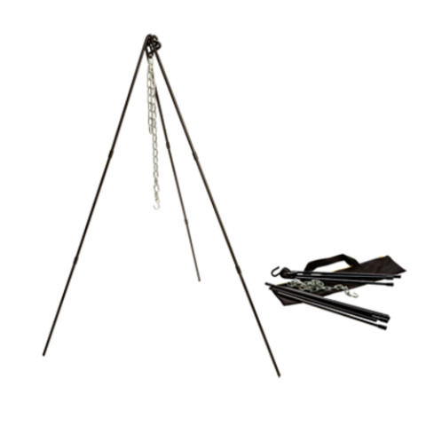 Dutch Oven Tripod, 40-60" adjustable legs, 36" galvanized chain with S hook, heavy-duty tote bag included, 1/2" bar stock steel, black finish