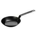 Skillet, 8" dia. 3-2/5"H (exterior), riveted handle, stove top/induction/grill/campfire/oven safe, seasoned with oil, hand wash only, heavy gauge carbon steel, Made in USA