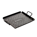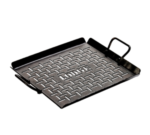 Grilling Pan, 16-1/8" x 12-1/8" x 2-1/2"H (exterior), 13" x 12" cooking surface, (2) riveted steel handles, stove top/grill/campfire/oven safe, seasoned with oil, hand wash only, heavy gauge carbon steel, Made in USA