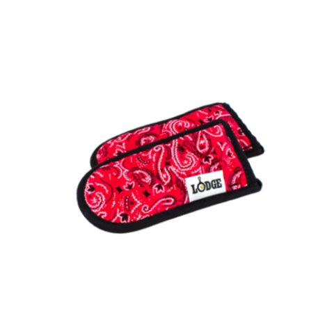 Hot Handle Holder Set, 7-3/4"L, heat protection up to 350°F, cloth, red bandana, Made in USA (2 each per set) (fits most Lodge cookware)
