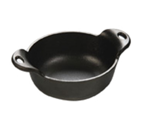 Mini Server, 12 oz., 5" dia. x 2-3/8"H (exterior), round, with handles, heat-treated (rust resistant), stove top/induction/grill/campfire/oven safe, seasoned with oil, dishwasher safe, cast iron, Made in USA