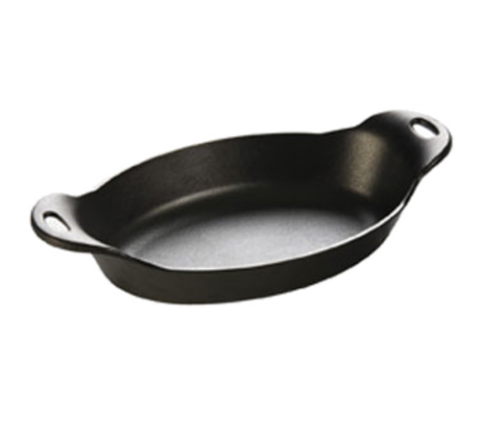 Server, 36 oz., 12-9/16"L x 6-15/16"W x 2-9/16"H deep (exterior), oval, with handles, heat-treated (rust resistant), stove top/induction/grill/campfire/oven safe, seasoned with oil, dishwasher safe, cast iron, Made in USA