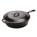 Skillet, 5 quart, 12-9/10" dia. x 4-1/8"H (exterior), round, with helper handle, cover with integral handle & self-basting tips, stove top/induction/grill/campfire/oven safe, seasoned with oil, hand wash only, cast iron, Made in USA