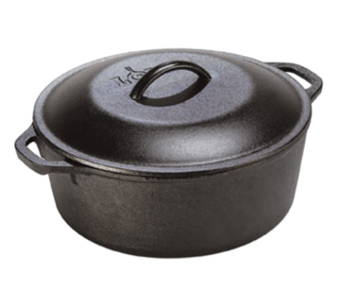 Dutch Oven, 7 quart, 12-5/8" dia. x 5-1/2"H (exterior), cover with handle, handled pot, stove top/induction/grill/campfire/oven safe, hand wash only, seasoned with oil, cast iron, Made in USA