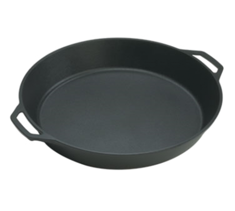 Skillet, 17" dia. x 2-5/8"H (exterior), round, dual handled, stove top/induction/grill/campfire/oven safe, seasoned with oil, hand wash only, cast iron, Made in USA