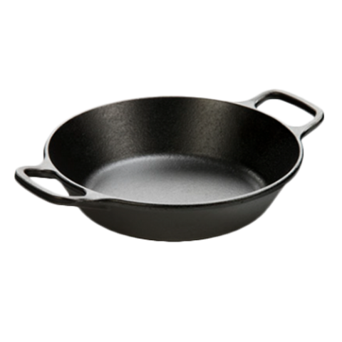 Skillet, 8-1/4" dia. x 2-1/8"H (exterior), round, dual handled, stove top/induction/grill/campfire/oven safe, seasoned with oil, hand wash only, cast iron, Made in USA