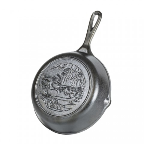 Wildlife Series™ Skillet, 8-7/10" dia. x 1-9/10"H (exterior), round, "duck scene" design, stove top/induction/grill/campfire/oven safe, seasoned with oil, hand wash only, cast iron, Made in USA