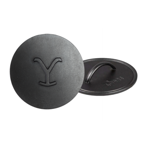 Yellowstone Grill Press, 8"Dia., "Power Y" design, seasoned cast iron, Made in the USA