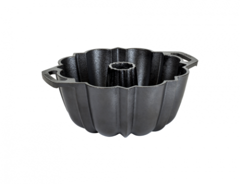 Fluted Cake Pan, 11-7/10"W x 9-4/5"D x 4-3/10"H, dual handle, oven safe, seasoned cast iron, PFOA & PTFE free material, Made in the USA