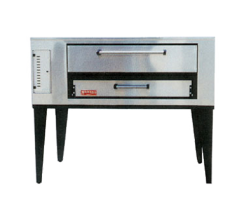 Pizza Oven, Deck Type, gas, (1) 7"H x 36" x 48" baking chamber, (4) 18" pie capacity, 2" thick brick deck, 300 - 650° thermostat, stainless steel top, front, doors & sides, aluminized steel interior, adjustable legs, 95,000 BTU, UL, UL EPH Classified, Made in USA