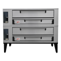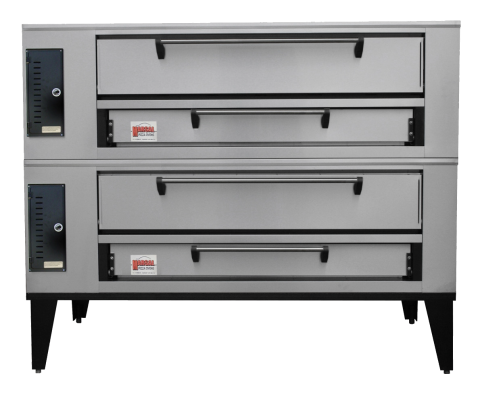 Pizza Oven, Deck Type, gas, stacked (2) 7"H x 44" x 66" baking chambers, (8) 18" pie per deck, 2" thick brick decks, 300 - 650° thermostats, stainless steel top, front, doors & sides, aluminized steel interior, adjustable legs, 260,000 BTU, UL, UL EPH Classified, Made in USA