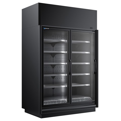 Endless Medium-Temperature Merchandiser, self-contained, 62" W, (2) 30" W hinged glass door sections (ends are not included), (10) cantilever shelves with tag molding, LED lighting, painted textured galvanized steel interior & exterior, add 20 inches to height for top shroud (shipped loose), bottom mount coil, MHMD002EB-ENQ condensing unit, cULus, UL EPH Classified, Made in USA (SPECIAL ORDER - Contact factory for availability)