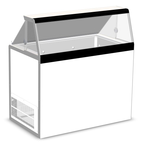 Ice Cream Dipping/Display Cabinet, (8) 3 gallon can display, (4) 3 gallon storage, painted galvanized steel interior and exterior, 50" high stainless steel serving deck, glass view windows, LED interior lighting with switch, temperature range 5° to -5°F, 3/5 HP, 115v/60/1-ph, 5.9 amps, NEMA 5-15P, cULus, UL EPH Classified
