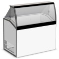 Ice Cream Dipping/Display Cabinet, low-glass, (8) 3 gallon can display, (4) 3 gallon storage, painted galvanized steel interior and exterior, 50" high stainless steel serving deck, curved glass view windows, LED interior lighting with switch, temperature range 5° to -5°F, 3/5 HP, 115v/60/1-ph, 5.9 amps, NEMA 5-15P, cULus, UL EPH Classified