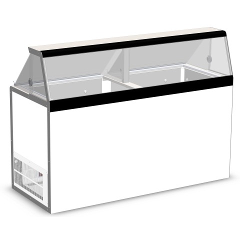 Ice Cream Dipping/Display Cabinet, (12) 3 gallon can display, (8) 3 gallon storage, painted galvanized steel interior and exterior, 50" high stainless steel serving deck, glass view windows, LED interior lighting with switch, temperature range 5° to -5°F, 5/6 HP, 115v/60/1-ph, 7.2 amps, NEMA 5-15P, cULus, UL EPH Classified