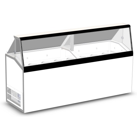 Ice Cream Dipping/Display Cabinet, low-glass (16) 3 gallon can display, (12) 3 gallon storage, painted galvanized steel interior and exterior, 50" high stainless steel serving deck, glass view windows, LED interior lighting with switch, temperature 5° to -5°F, 5/6 HP, 115v/60/1-ph, 7.2 amps, NEMA 5-15P, cULus, UL EPH Classified