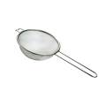 Strainer, 4" dia., small, with pan hook, looped handle, stainless steel mesh