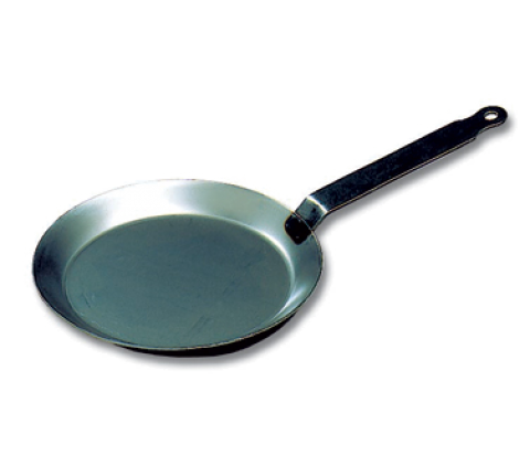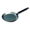 Crepe Pan, 9-1/2" dia., round, iron loop handle, black steel, suitable for gas, electric, ceramic, halogen, and induction hobs, (made in France)