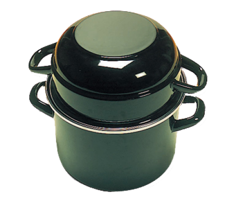 Mussel Pot, 1-1/2 qt., 7" dia. x 5"H, with lid, enameled steel with stainless steel rim, Made in France