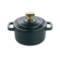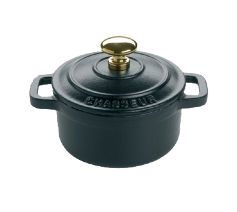 Le Chasseur Mini Stew Pot, 1/4 qt., 4" dia. x 3-1/2"H, round, with lid, enameled, cast iron, black, suitable for gas, electric, ceramic, halogen, and induction hobs, (made in France)